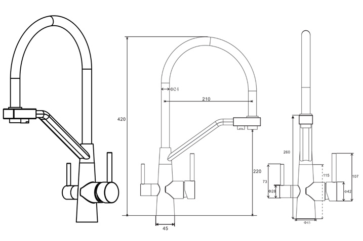 - Эстетика и экономия пространства за счёт объединения кранов для очищенной и водопроводной воды;